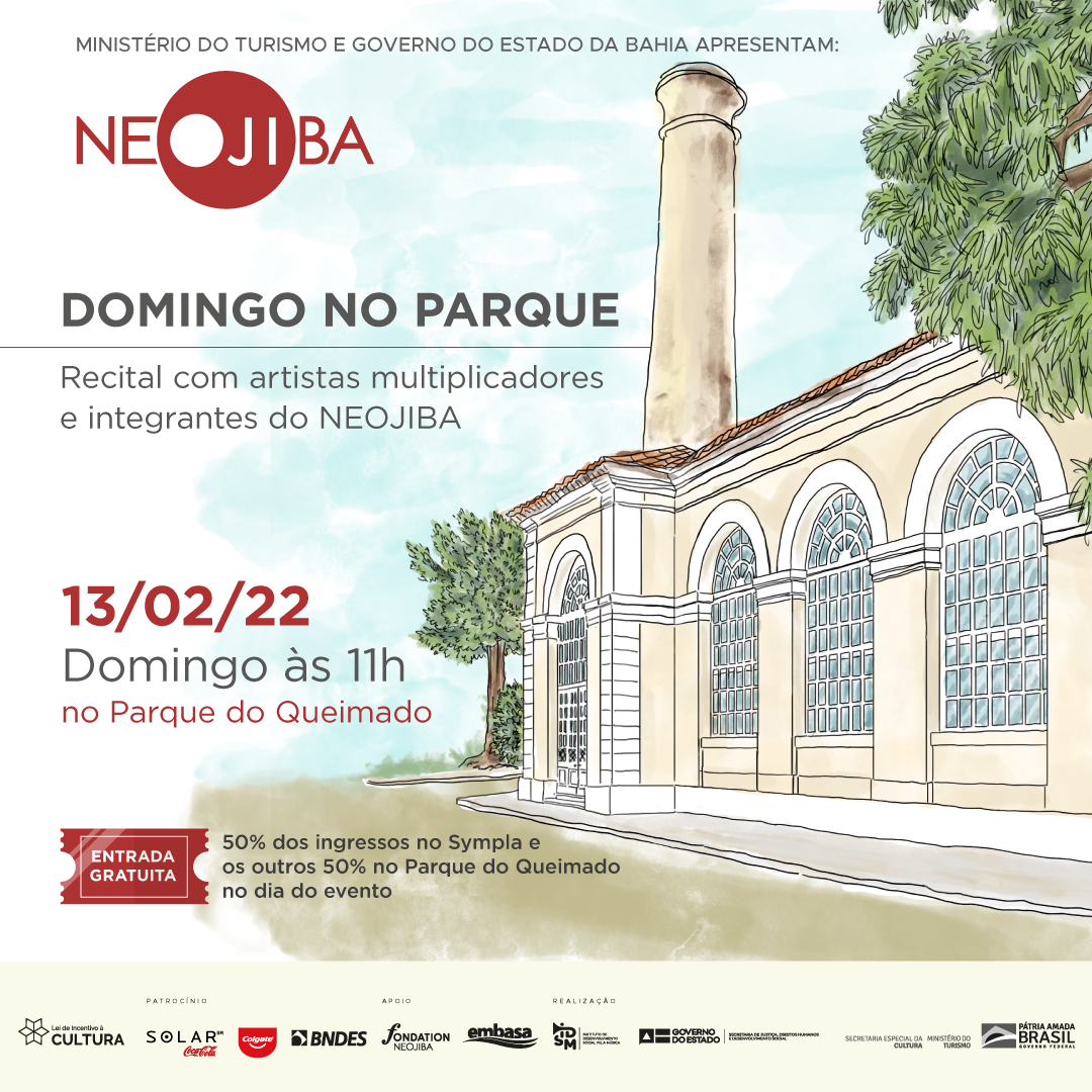 Neste domingo (13/2), o NEOJIBA realiza a primeira edição do ano do “Domingo no Parque”, série de recitais gratuitos que acontece no Parque do Queimado, na Liberdade, sede do programa do Governo da Bahia. No palco, estarão artistas multiplicadores e integrantes do NEOJIBA.