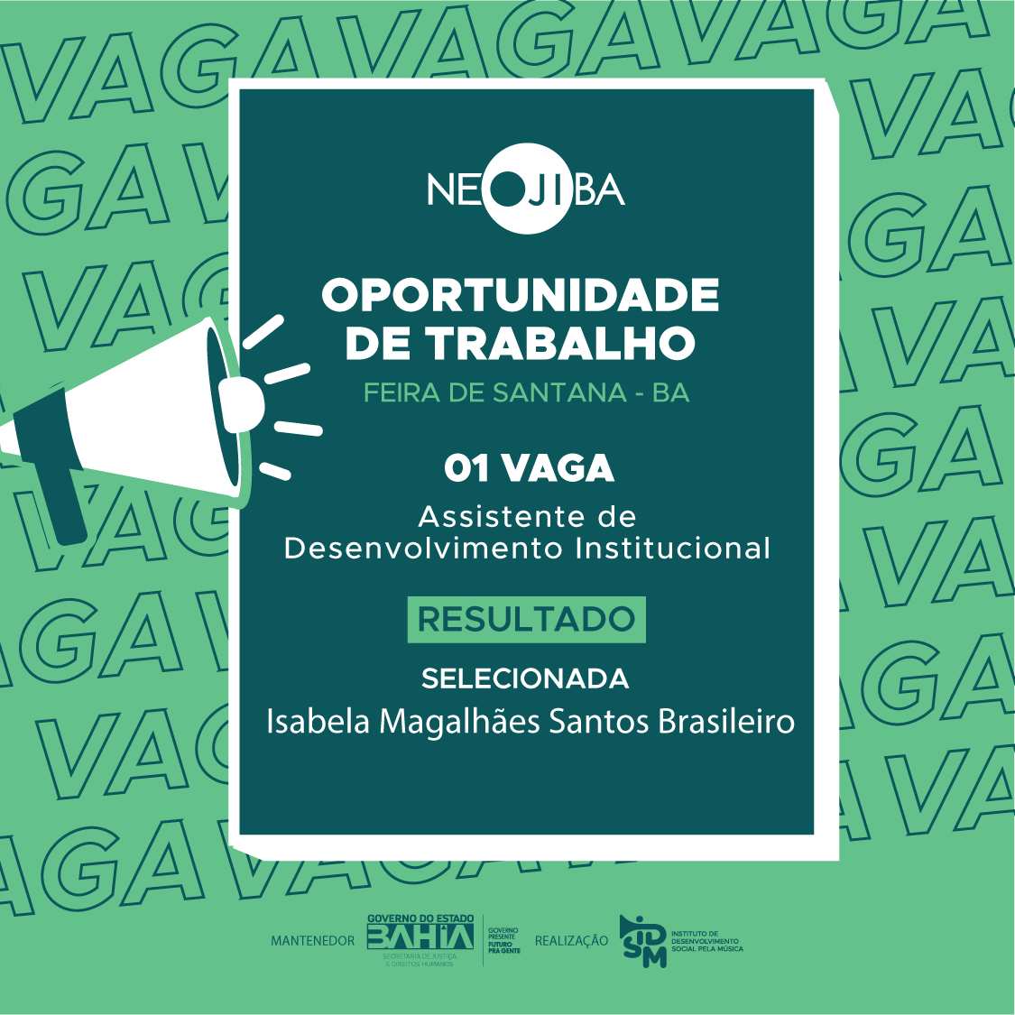 ASSISTENTE DE DESENVOLVIMENTO INSTITUCIONAL NO NÚCLEO TERRITORIAL DO NEOJIBA em FEIRA DE SANTANA