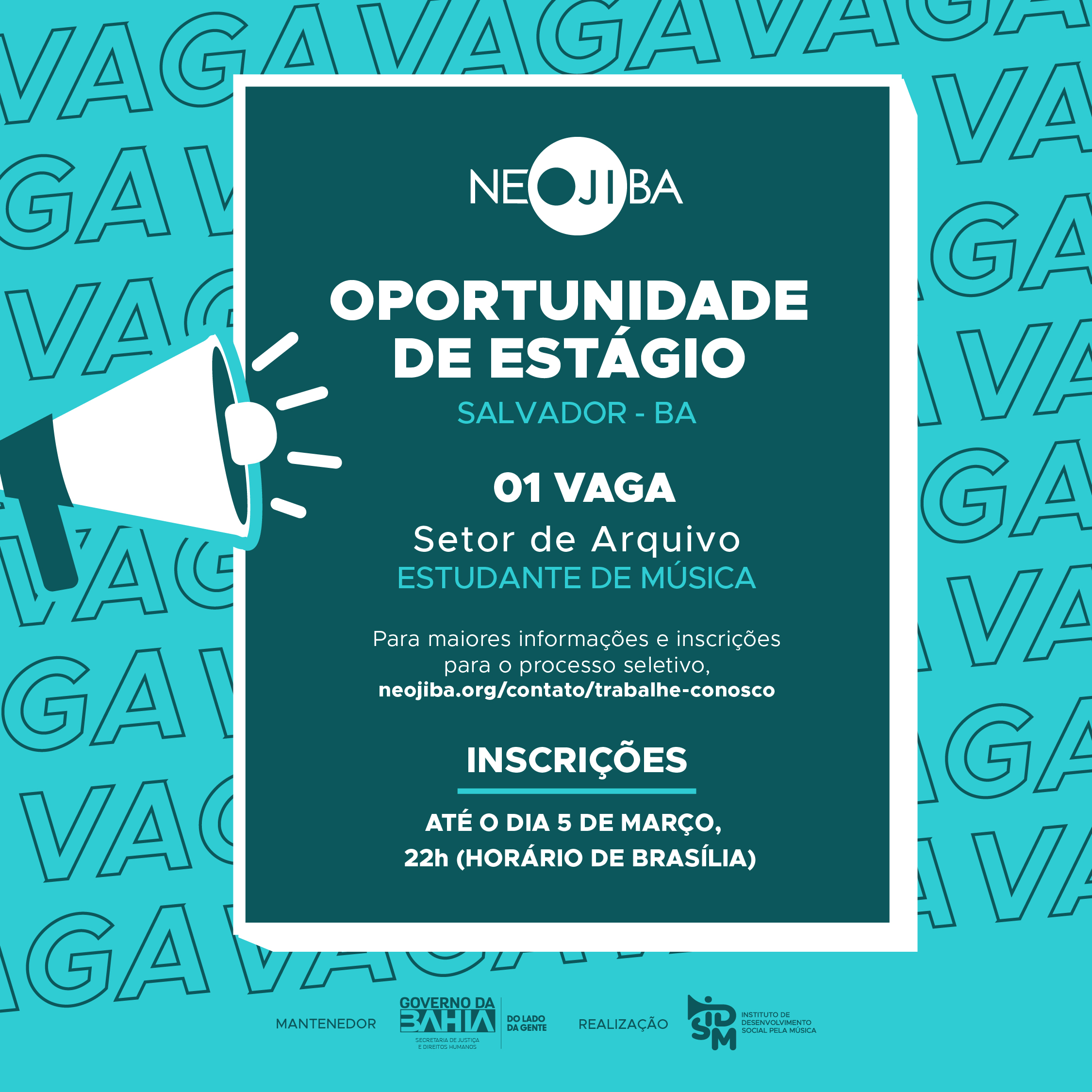 O Instituto de Desenvolvimento Social pela Música (IDSM), Organização Social que faz a gestão do PROGRAMA NEOJIBA (Núcleos Estaduais Juvenis e Infantis da Bahia), no uso de suas atribuições legais, torna pública a realização do Processo Seletivo Simplificado para contratação de 01 estagiário para atuar no setor de Arquivo.