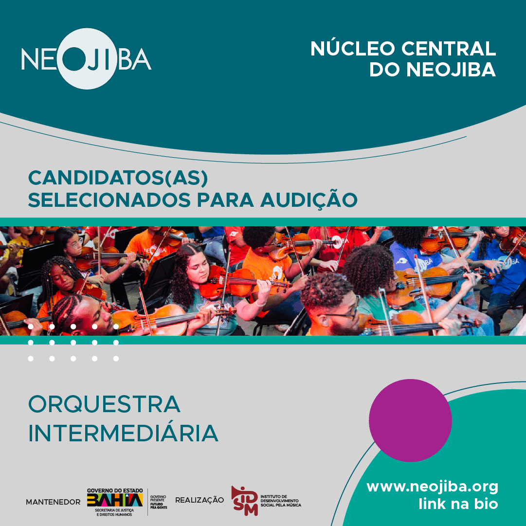 SELECIONADOS PARA AUDIÇÃO DA ORQUESTRA INTERMEDIÁRIA DO NEOJIBA